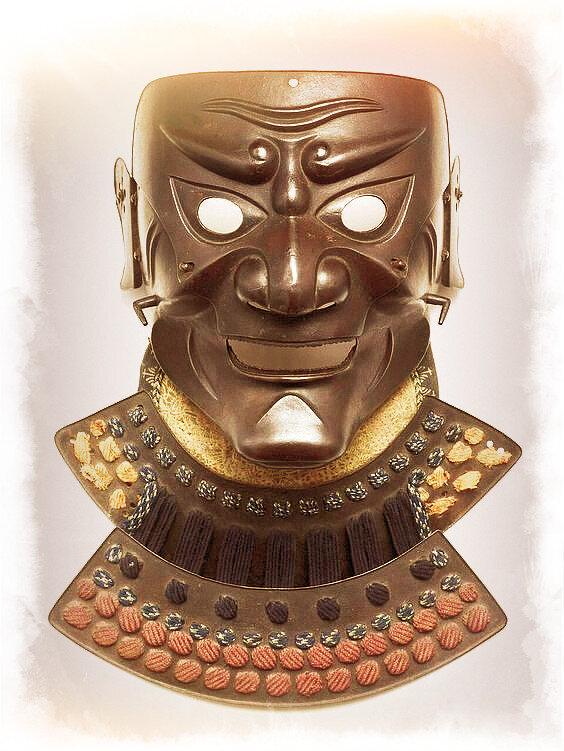 Начнем, пожалуй, с того что наш вид «Homo условно Sapience» (не хочу обидеть ничьих чувств, мое личное мнение) достаточно агрессивен и воинственен, а как следствие, во все времена развивал средства и членовредительства и защиты себя любимого. Японская знать не была исключением, и естественно, никто из самураев, а именно они и представляли костяк высшего общества тех времен, не хотел после первой же схватки отправиться к духам предков. Понятное дело, развивались доспехи для относительно безопасного посещения полей сражений. Мы в данном повествовании остановимся на защитных личинах, а именно для этого они изначально и использовались воинами.