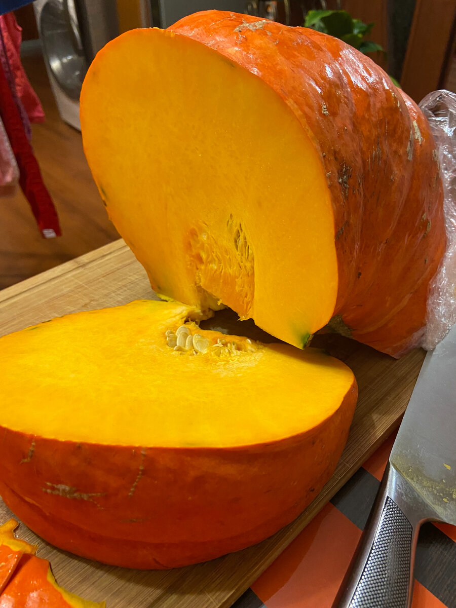 Странно, два дня на Яндекс.Дзен, а уже была попытка взлома страницы, не могла зайти вчера. К своему счастью (а точнее, к счастью беременного замороченного мозга) не родила 13го! Сходила на прием к своему доктору, она благополучно вручила направление в роддом, к слову, у меня только 40 недель. Естественно, туда я не поеду пока. Пару дней еще отсижусь, показаний никаких вмешиваться в естественный процесс нет. После приема вышла, будто на свободу (надо же, ведь больше не придется ходить на эти бестолковые приемы со взвешиваниями, для галочки) Хорошо погуляли с мужем и ребятишками. А вечером занялась своей огромной тыквой, которая ждала своего часа... Четверть тыквы заморозила, полкило сварила на утреннюю пшенную кашу, полкило натерла на чудо-терке на тыквенные оладушки. Никаких позывов к рождению чуда так и не произошло) Ждем-с!