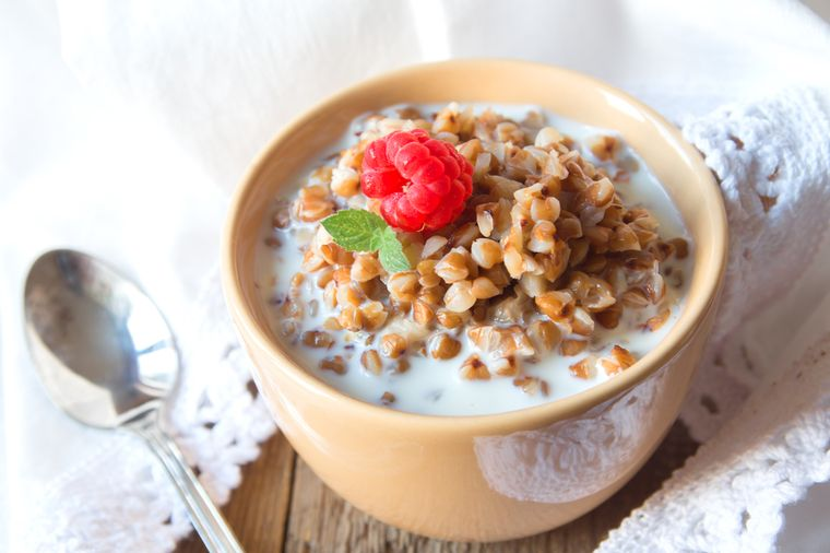 Для тех, кто решил измениться радикально. В современном мире люди активнее и охотнее стали задумываться над тем, что они едят. И исходя из высокой популярности и актуальности темы здорового питания, сеть пестрит соответствующими рецептами, но не все они простые и доступные. Наш же рецепт очень прост: и в приготовлении, и в составляющих ингредиентах, и в калорийности. Греча без варки с кефиром может быть как хорошим завтраком, богатым сложными углеводами, которые надолго насыщают, так и легким полезным ужином. По желанию можно добавить любимые фрукты или ягоды. Калорийность 92,06 ккал Белки 3,71 г Жиры 0,97 г Углеводы 18,26 г Пищевая ценность на 100 г. Калорийность рассчитана для сырых продуктов. Будет готово через 3 часа 5 минут Время на кухне 5 минут ПРОДУКТЫ ДЛЯ ОСНОВНОГО БЛЮДА Порция 1 Гречка50 г Кефир по вкусу Вода120 г Соль по вкусу Сахар по вкусу ДЛЯ УКРАШЕНИЯ Ягоды по желанию ПОШАГОВЫЙ ФОТОРЕЦЕПТ ПОДГОТОВИТЬСЯ Подготовьте все необходимые ингредиенты, выложите их на стол д