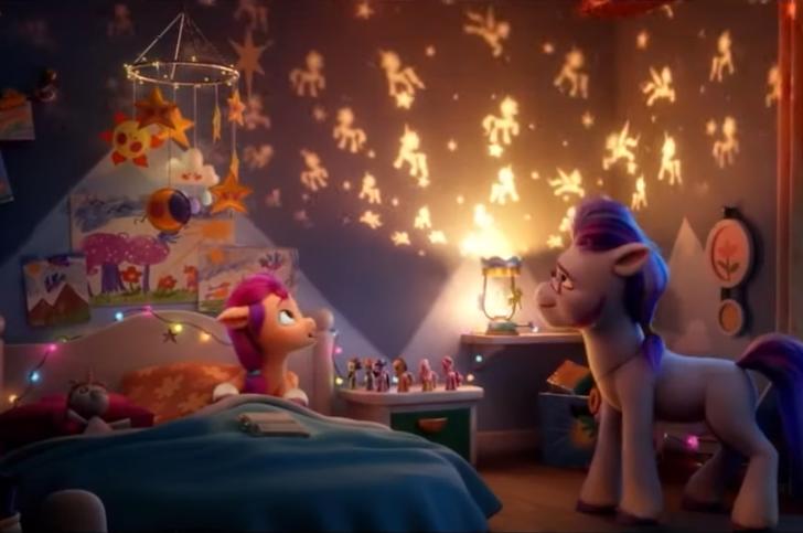 Всем привет! Буквально месяц назад вышел трейлер My little ponyG5. И здесь вы можете увидеть некоторые скрытые пасхалки. Давайте разберем все по порядку. На первом же кадре на столе Санни мы видим фигурки главной шестерки. Здесь на заднем плане можно увидеть картинку Свирла Бородатого Хм, ни на что не напоминает этот кадр? А здесь можно увидеть плакаты кино "Челюсти" и "Гарри Поттер и Тайная комната".