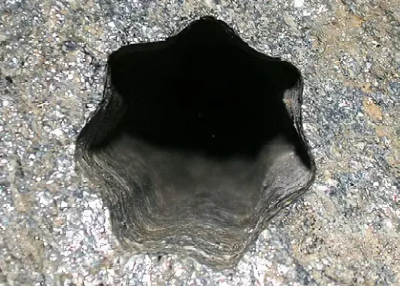 Вот почему в некоторых камнях внутри следов, оставленных «инопланетными лазерными резаками», часто обнаруживаются вполне земные фрагменты рабочих деталей перфораторов и буров. Например, в одном из заброшенных карьеров в Карелии участники экспедиции Олега Павлюченко (канал Ютуб AISPIK) сняли видео, на котором очень хорошо видна коронка промышленного перфоратора, застрявшая в гранитном монолите.