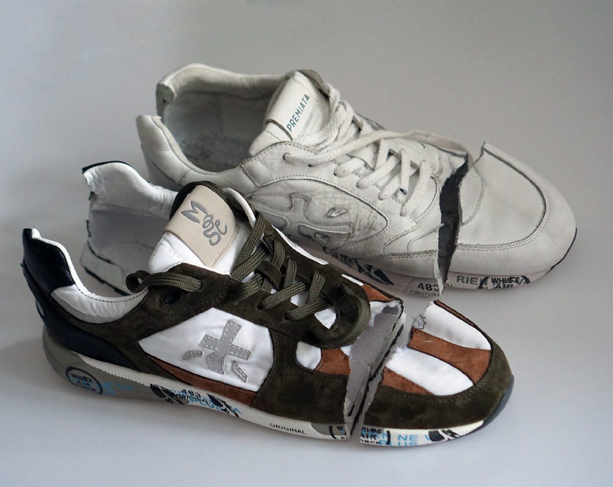 Недавно мы писали о том, как отличить поддельные кроссовки Premiata от оригинальных можно почитать здесь, а сегодня мы разрежем подделку и покажем, что у нее внутри. И конечно сравним с оригинальными кроссовками, чтобы показать, на что Вы обрекаете свои ноги, если покупаете подделку. В нашем обзоре участвуют оригинальная модель Zac Zac и поддельная Premiata Mase. Подделка стоит от 6000 рублей, и это если Вам очень повезет. А учитывая известность и нарастающую популярность бренда стоимость этих подделок падать точно не будет. Стоимость оригинальных Premiata без скидки составляет 24 000 рублей, а со скидкой их можно купить за 16 000. Сначала, как обычно, разрезаем кроссовок поперек со стороны мыска. Верх оригинальных кроссовок в разрезе значительно толще, чем верх подделки. Объясняется это тем, что фейкмейкеры сэкономили на внутренней кожаной отделке. Да и замша в подделке искусственная и очень тоненькая не в пример добротным натуральным материалам оригинальных кроссовок. Основная стел