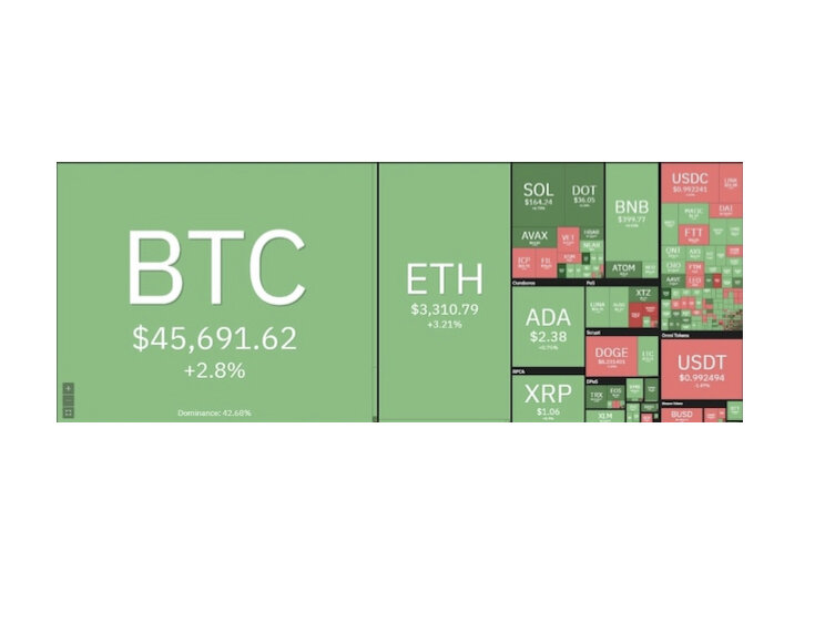 Приятно начинать утро с зеленого крипторынка, но если смотреть не на цвет, а на цены, они радуют в разы меньше. Пока речь идет о маленьком развороте с надежной на что-то большее! • BTC повторно стучит в двери с надписью 200 дневная MA, что сейчас выступает сопротивлением. Еще один неудачный штурм развернет биткоин на $43 000. Участники рынка тоже начинаются переживать за силу быков, индекс страха показывает 30 баллов и готов отправиться в зону ужаса • Ряд альткоинов продолжает радовать ростом, их индекс держится выше половины, что говорит о возможности здесь и сейчас получать прибыль. Это монеты между 20 и 60 местом в рейтинге с ростом за последние 7 дней порядка 40%