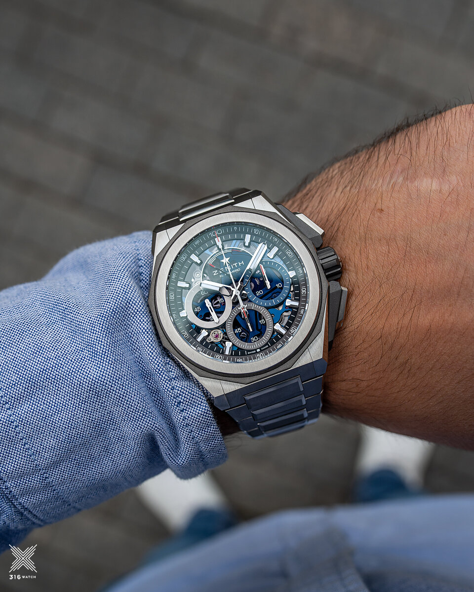 Помимо технических инноваций, дизайн Zenith Defy Extreme раскрывается до новых пределов- титановый корпус подвергся рестайлингу и выглядит еще острее, чем раньше. Размер увеличен до 45 мм при толщине в 15,4 мм. Конструкция корпуса включает 12-гранное кольцо под безелем, которое доходит до 12-сторонней задней крышки часов. У Defy Extreme также есть более острые края на корпусе, которые переходят в интегрированный в корпус браслет.