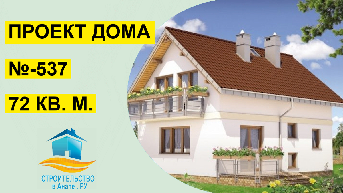 Проект дома 72 м² (№-537) Планировка, внешний вид, варианты материалов для строительства.