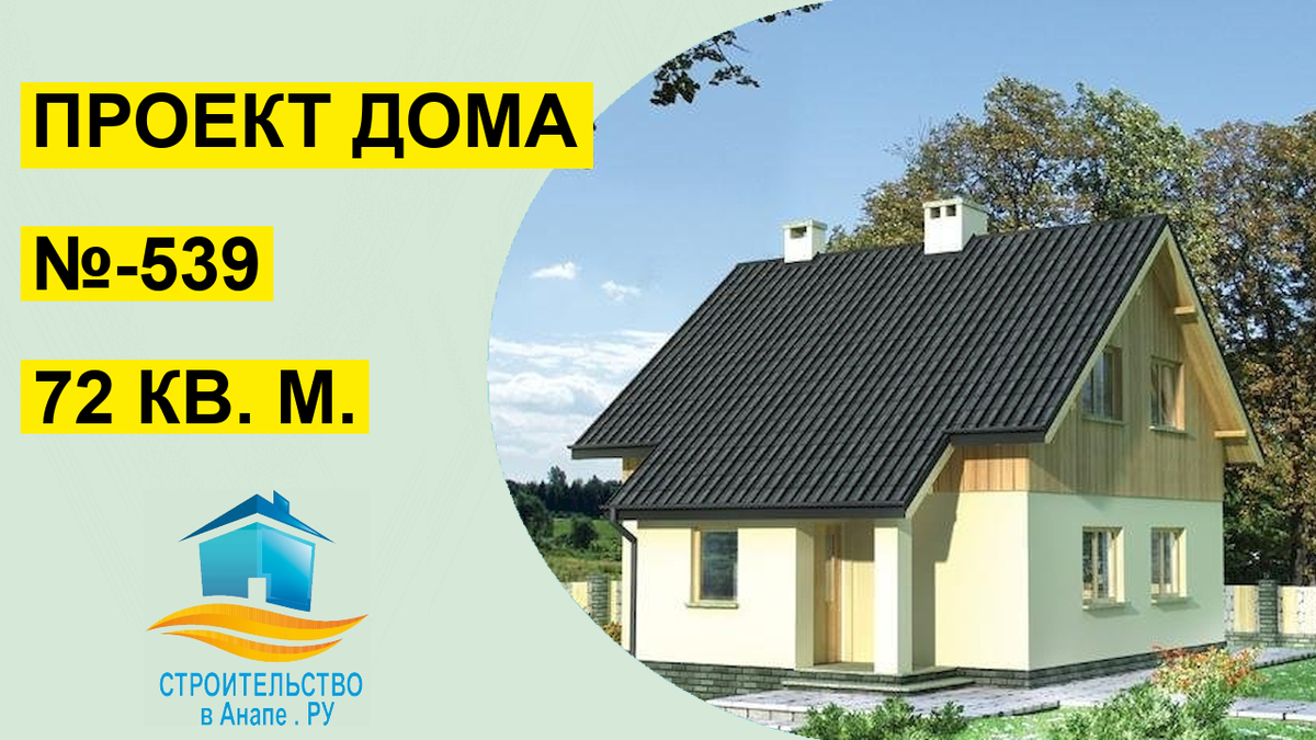 Проект дома 72 м² (№-539) Планировка, внешний вид, варианты материалов для строительства.
