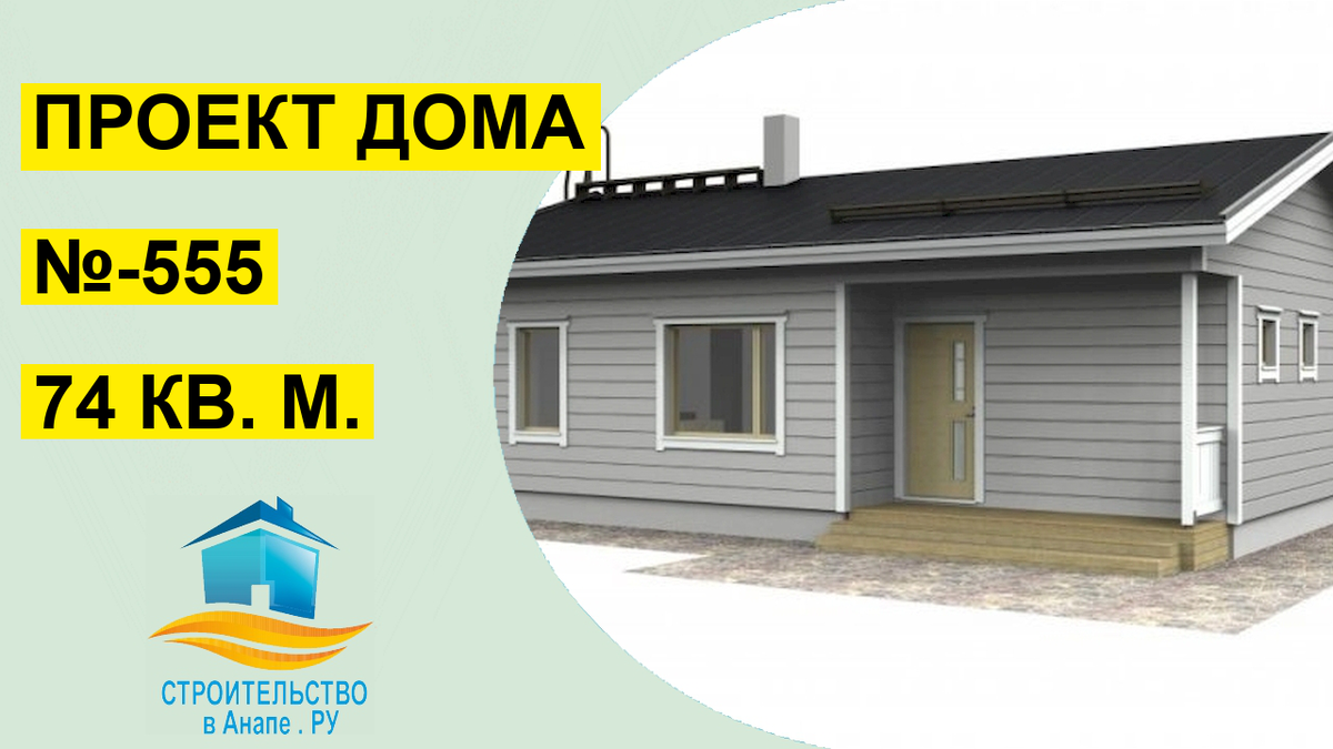 Проект дома 74 м² (№-555) Планировка, внешний вид, варианты материалов для строительства.