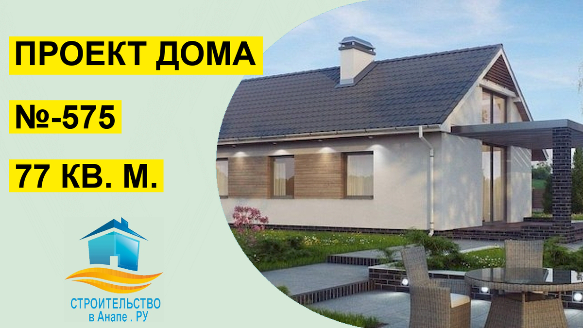 Проект дома 77 м² (№-575) Планировка, внешний вид, варианты материалов для строительства.