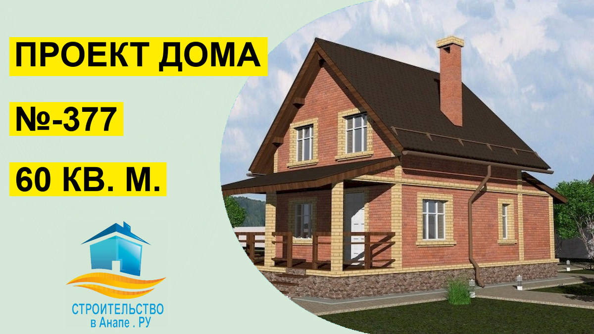 Проект дома 60 м² (№-377) Планировка, внешний вид, варианты материалов для строительства.