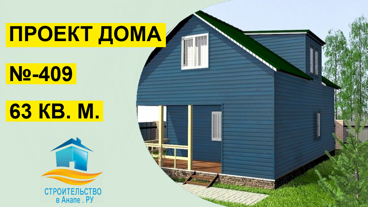 Проект дома 63 м² (№-409) Планировка, внешний вид, варианты материалов для строительства.