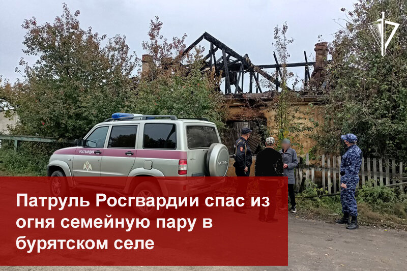 В с. Бичура сотрудники вневедомственной охраны Управления Росгвардии по Республике Бурятия спасли жизни мужчине и женщине, спавшим в горящем доме. Возгорание кровли четырёхквартирной одноэтажной постройки росгвардейцы обнаружили во время ночного патрулирования. Как оказалось, люди находились только в одной из квартир дома. Так как на стук в запертую изнутри дверь никто не откликался, стражи правопорядка приняли решение её выломать. В помещении были спящие мужчина и женщина. Росгвардейцы вывели граждан на улицу и помогли им эвакуировать из квартиры часть имущества. Затем наряд вневедомственной охраны оповестил о происшествии жильцов соседних домов и организовал беспрепятственный проезд к дому пожарных, которые ликвидировали возгорание.