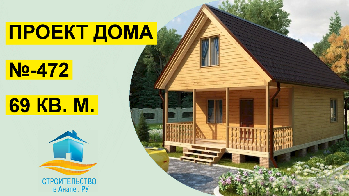 Проект дома 69 м² (№-472) Планировка, внешний вид, варианты материалов для строительства.