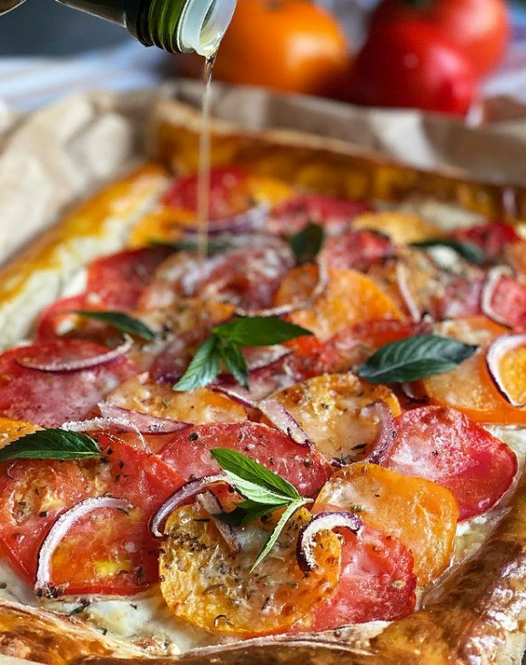 В этот раз я решила сделать слоеный, несладкий пирог с томатами