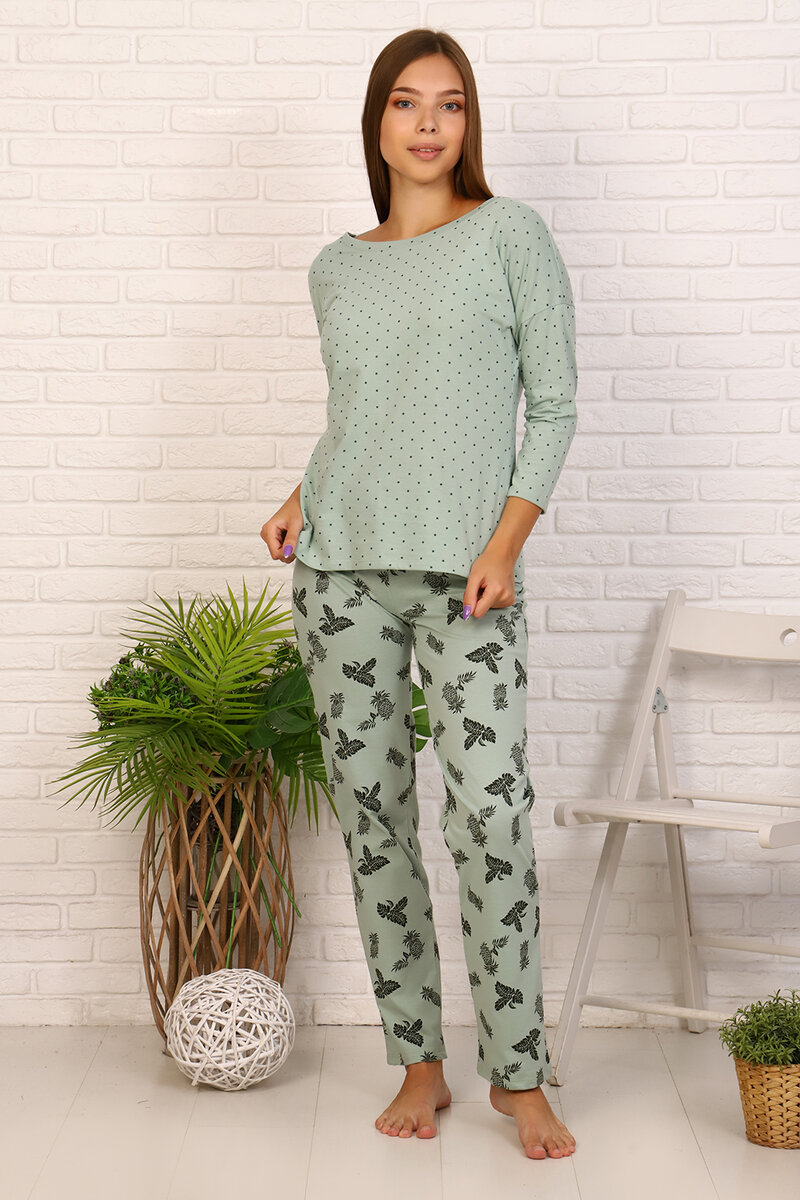 Выглядеть стильно и привлекательно, даже дома, не против любая представительница слабого пола. Но халаты и подобная одежда тому явно не способствуют. Совсем другое дело домашние костюмы женские. Эта продукция завоевала симпатии милых дам благодаря комфорту при носке и приятному дизайну, позволяя оставаться неотразимой и стоя у плиты, и во время уборки. Сегодня Мы Вам расскажем про молодежный домашний костюм женский. Только Российского производства и сделанные из 100% хлопка. Ткани подбираются удобные и мягкие, и в нашем случае это - кулирка. Три качества - износостойкий, удобный, дышащий. Домашний костюм женский от 42 до 54 размера. Что значит быть износостойким – домашнее назначение предполагает ежедневную носку и частые стирки. Качественная продукция служит как можно дольше, сохраняя начальный вид и форму. Костюм женский кофта и брюки. Кофта полуприлегающего силуэта со спущенной линией плеча и рукавом 3/4, обработанным вподгибку. Горловина обработана при помощи узкого воротника. Горл