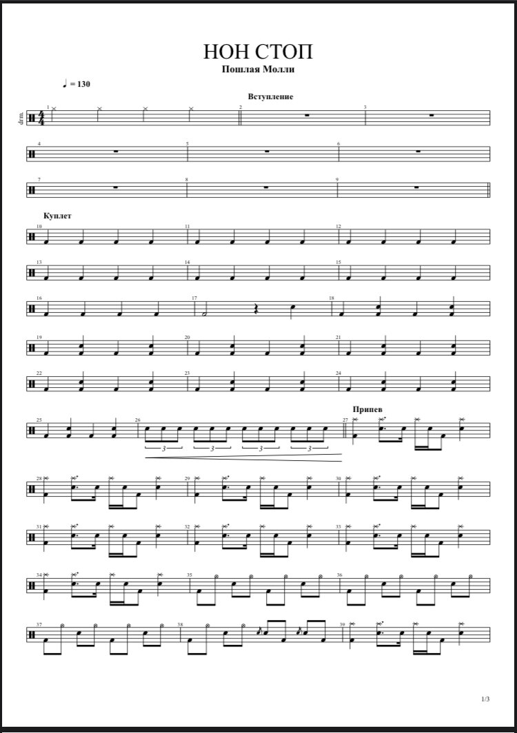 Барабанные ноты Пошлая Молли-«Нон стоп»
