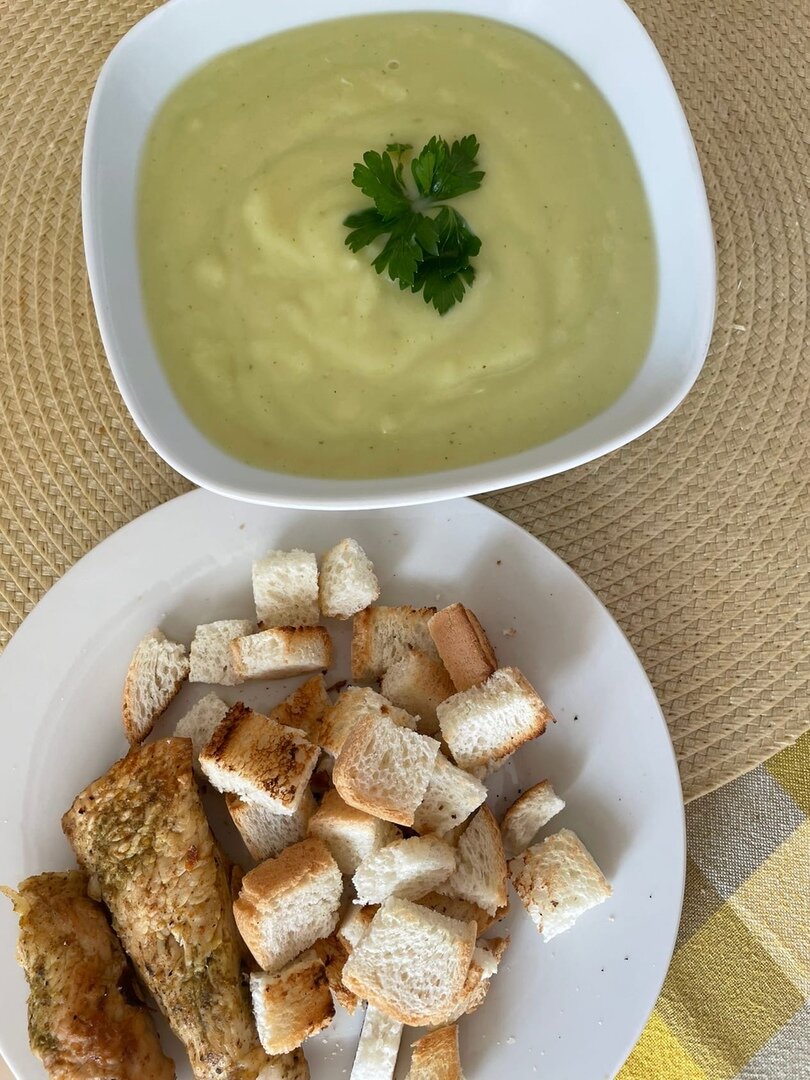Крем-суп из брокколи и картофеля с хрустящими сухариками