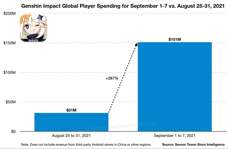 Вся прибыль от Genshin impact после выхода обновления 2.1
