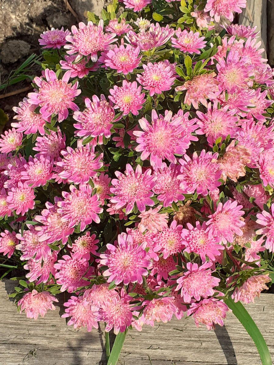 Что это за цветок на фото? Неопытный цветовод может перепутать его с хризантемой, но на самом деле это такая астра - миниатюрная астра серии Бамбино. Первый год я посеяла такую астру и сразу же она мне очень понравилась Чем-то действительно напоминает хризантему мультифлора, но гораздо более простая в выращивании. Я ничего против мультифлоры не имею и пробовала сажать их на своём участке, но во-первых, в нашем климате они не зимуют и размножаются только черенками, во-вторых, ей нужно много места и открытые со всех сторон участки, чтобы получить обильное цветение в виде цветочного шара. Для нас такое обеспечить сложновато. Астра тоже не зимует в грунте, но с её разведением гораздо проще - весной посеять семена и она вырастет и зацветёт в конце лета. А семена я сеяла даже не дома в контейнеры - я их посеяла в теплице в мае, в начале июня высадила в грунт (весна была очень холодной) и в августе они начали цветение. Ну а можно было бы посеять раньше и цветение бы тоже раньше наступило - я