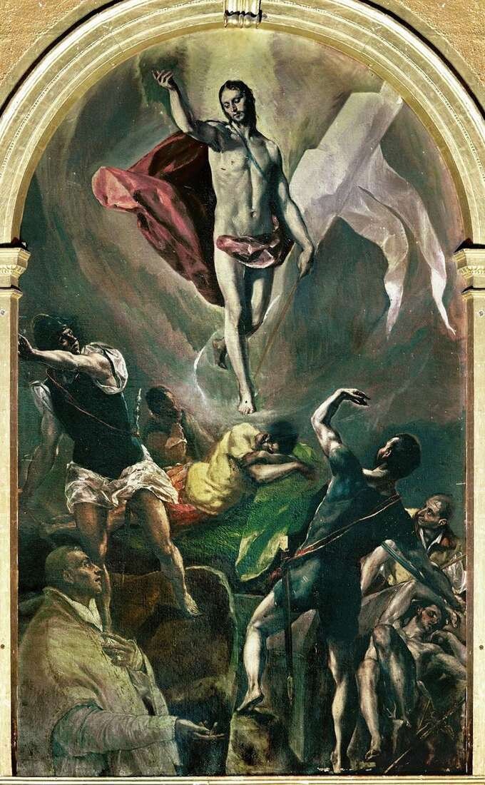 Ритм цветовых пятен, позы застывших фигур, все их жесты, изгибы белого полотнища, складки одеяний, грани каменных глыб – все тщательно уравновешено, пригнано в соответствие с общим композиционным замыслом. Легкая фигура Христа словно парит над тяжелыми человеческих фигур в доспехах, над массами камней. Однако, бледная и светящаяся, Его фигура все же материальна и находится в реальном пространстве. Все эти черты исчезают в более позднем произведении на эту же тему.