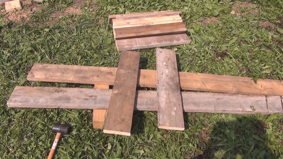 Приветствую всех, сегодня будем изготавливать необычную мебель в стиле лофт своими руками. Мебель неотъемлемая часть нашей жизни, но хорошая мебель стоит сейчас мягко говоря не дешево, поэтому сегодня попробуем изготовить своими руками из того что есть и посмотрим что из этого выйдет. Всем приятного просмотра! После постройки гаража остались вот такие доски в цементе. Пройдемся рубанком, чтобы снова придать им симпатичный вид. Собираем каркас 200мм на 70мм. На бруске сделаем запилы вот такой формы. Мы получили два таких бруска длинной 195мм. Прикручиваем их к основному каркасу. Лобзиком вырезал два ровных круга. Напилил доски длинной 64мм и затем покрасил их. Прикручиваем наши колесики. Доски устанавливаю на саморезы желтого цвета. Вот такой шезлонг у меня получился. Мне очень нравится! А мы переходим к следующей самоделке. Нам понадобится брус длинной 1000мм. Отрезаем лишнее на торцовочной пиле. Проходимся рубанком. Пером на 38 мм делаем четыре отверстия с одинаковым интервалом друг о