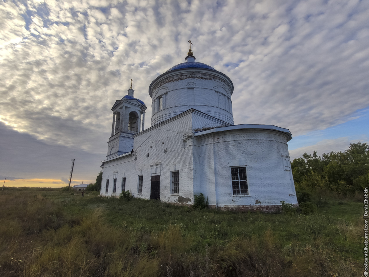 Посредине дороги от трассы в Широкий Карамыш находится село Урицкое. Напомню, что мы путешествуем с вами по Лысогорскому району. Небо в день путешествия было особенно живописным. Тут словно раздел небосклона происходит. Сжигание сопутствующего газа при добыче нефти. Десяток километров от трассы по качественной дороге, и мы в Урицком. Сразу видно её главную достопримечательность. Само село по преданию было образовано беглыми крестьянами в 1677 году. В 1691 году Пётр I пожаловал эти земли своему дяде Льву Кирилловичу Нарышкину. В 1720-30-х годах деревня перешла в качестве приданого к дочерям Нарышкина, вышедшим замуж за князей Голицына и Кушникова. Деревня получила названия Голицыно и Чивка, а после строительства храма - Покровское. 5 октября 1918 года собрание граждан Голицынской волости постановило назвать село Урицким в честь убитого 30 августа того же года революционера Моисея Соломоновича Урицкого. В селе имеются типовые блочные сельские дома. Клуб, сделанный из церковной конюшни. А