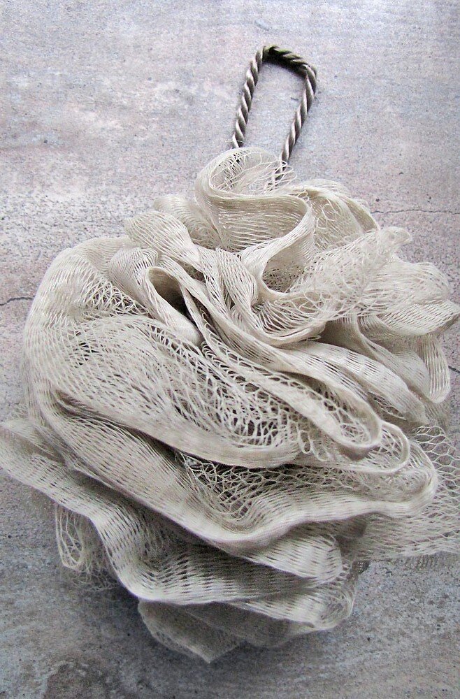 Многие пользуются подобными мочалками. Они гигиеничны, недороги, быстро сохнут. Но все равно их надо менять каждые 3-6 месяцев. И, кроме того, они могут прийти в негодность раньше времени из-за развязывания бечевки. И даже после этого их можно использовать в хозяйстве. Для этого развязываем веревочку, расправляем. С одной стороны завязываем узел. Можно для крепости два, один за другим. Выворачиваем на другую сторону, чтобы узлы смотрели внутрь. С другого конца делаем подгиб. Я для крепости сделала двойной. И аккуратно, стараясь не порвать, продеваем бечевку. Совмещайте слои таким образом, чтобы ячейки более или менее совпали. Для продевания можно использовать маленькую английскую булавку. Такие продаются обычно в наборах, еще бывают на некоторых ценниках одежды. Я обычно оставляю парочку для хозяйственных целей, иногда пригождаются. Так же можно вставить бечевку при помощи вязального крючка, либо пинцета. Проявите смекалку. Почти готово. Для перераспределения тяжести можно на противоп