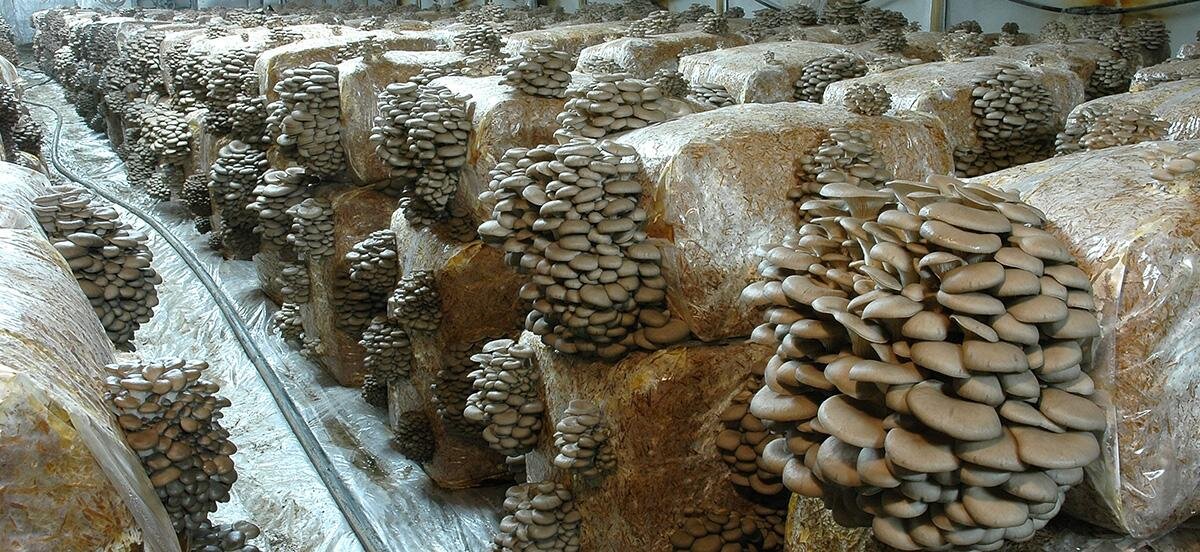 Плодоношение вешенки обыкновенной длится 3-5 лет. В последующие годы бруски не требуют особого ухода. На всем участке необходимо соблюдать чистоту, а осенью, особенно перед плодоношением, ее следует поливать. Урожай зависит от качества древесины и мицелия, погоды, полива, санитарного состояния леса и т.д. В течение трех лет с 1 ц древесины собирают в среднем 12 - 15 кг грибов. Если используют бруски от пород с твердой древесиной, то плодоношение длится 4-5 лет и урожай из 1 ц древесины увеличивается до 19-20 кг. Таким образом, описанный выше экстенсивный способ культивирования вешенки обыкновенной несложный и дешевый. Однако качество и количество полученных плодовых тел зависят от факторов внешней среды, следовательно, регулировать это влияние невозможно. Иная картина при интенсивном способе выращивания эта система отличается от экстенсивного в основном субстратом (отходы сельскохозяйственных растений) и длительностью развития (весь процесс происходит 9 недель, а не 3-5 ле