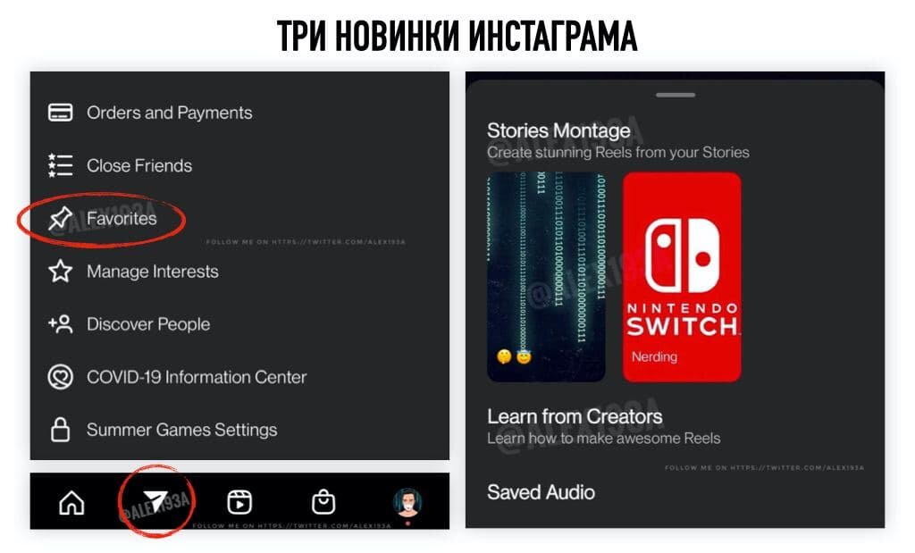 • Favorites. Это избранные аккаунты, которые будут чаще всего появляться в вашей ленте. Таким образом Инстаграм дает еще один способ влиять на алгоритмы. • Превращение сториз в рилз. В Instagram видят, что мало кто создает Reels: их сложно делать. И вот процесс создания решили упростить с новой функцией монтажа, – берете 2-3 своих последних сториз, автоматически соединяете, накладываете сверху популярный трек – и рилз готов. • Кнопка Директа возвращается. Как вы помните, Инстаграм убрал кнопку Директа в неудобный верхний угол с маленькой иконкой. Юзеры остались не очень этим довольны, и потому Instagram собирается вернуть эту кнопку на самое видное место.