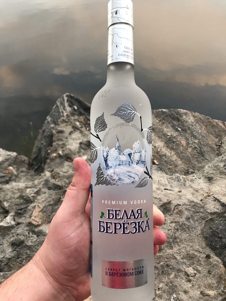 Водочный привет, ребята! Недавно выпивали Белую березку от Алкогольной Сибирской Группы и Омсквинпром, что из города Омска. Бутылка очень классно сделана, матовая, красивая, отличается знаменитым окошечком, через которое видно зимнюю, видимо, сибирскую деревню. На передней части нас встречает надпись "премиум водка".