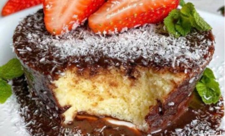Нежный и ароматный кокосовый тортик с шоколадом, который готовится очень быстро. Ингредиенты: Яйцо-1 шт. Детский творожок без добавок (4,5%)-100 г. Кокосовая стружка- 12 г. Мука-15 г. Шоколад молочный или горький- 15 г. Молоко 2,5% - 15 мл. Кокосовое масло - 15 мл. Разрыхлитель- 0,5 ч. л. Подсластитель по вкусу. Время приготовления: 20 минут Кому подходит: детям от 3 лет Рецепт: 1. Соединить и тщательно перемешать яйцо, творожок, стружку 10 гр, муку, разрыхлитель и подсластитель. 2. Переложить смесь в форму, смазанную маслом, отправить в микроволновку на три минуты, переложить тортик на тарелку. 3. Соединить шоколад с молоком и растворить в микроволновке короткими импульсом по 10 секунд. 4. Смазать тортик шоколадом, присыпать остатками кокосовой стружки, украсить фруктами по желанию.