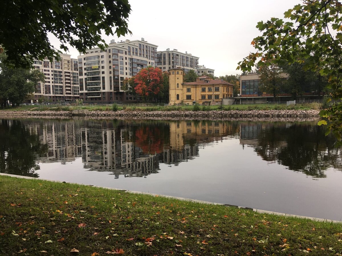 ЦПКиО имени Кирова, Елагин Остров, Санкт-Петербург. Как много интересных видео и статей есть на эту тему. Например, про прекрасный Масляничный луг, или Елагиноостровский дворец, с его Кухонным, Конюшенным, Оранжерейным и Фрейлинским корпусами... И они, бесспорно, прекрасны, особенно сейчас, после реставрации. Но есть небольшие, видные лишь через речку, так как закрыты заборами со стороны дорог, постройки. Что это? Самое старое - посередине, или первое справа от великолепного осеннего клена - это «Дача Олсуфьевых «Альгамбра» (Петровский яхт-клуб)» (Приморский проспект, д. 50, лит. А) Дача Олсуфьевых, территория которой включала несколько построек и пейзажный парк с прудом, возникает к 1840 году. В 1852 году на указанном участке устроен увеселительный сад «Альгамбра» - один из первых увеселительных садов Санкт‑Петербурга, на его территории возводится новое главное здание. В начале 1900-х дача приобретена Петровским яхт-клубом, который перестроил здания. От прежней застройки сохра