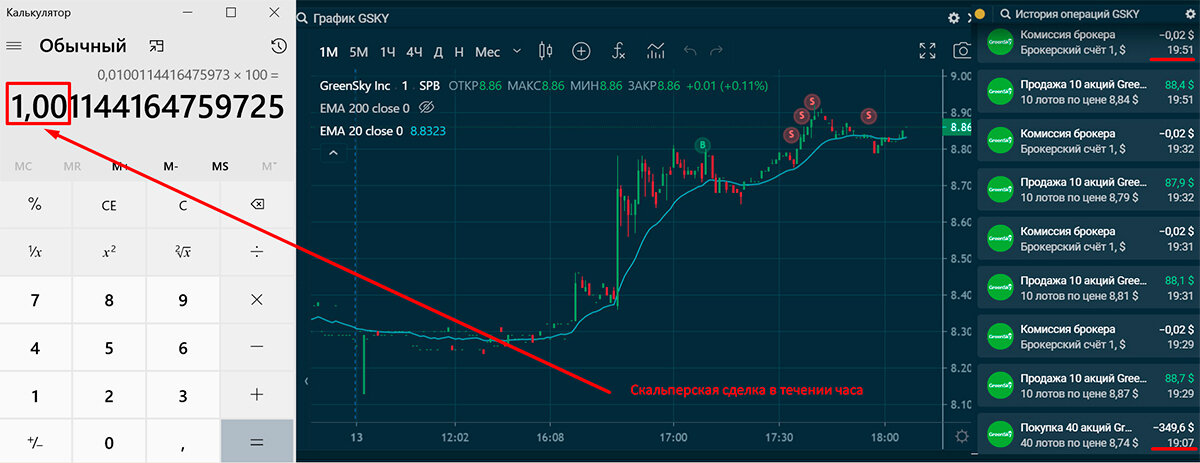 GreenSky, Inc. ( тикер на бирже GSKY)- технологическая компания, которая обеспечивает финансирование рекламных акций в торговых точках для продавцов, потребителей и банковских партнеров. В понедельник, 13 сентября, после открытия Америки прошли большие объемы и акция полетела наверх. Поучаствовал на одном из откатов, позицию закрыл 4 ордерами ( все видно на скрине с графика) По итогу получилось 1% в течении часа. Дисклеймер: Не является торговой рекомендацией! Интересная статья ⏩ Как вчера прокатился на авиакомпании United Continental Holdings (UAL)