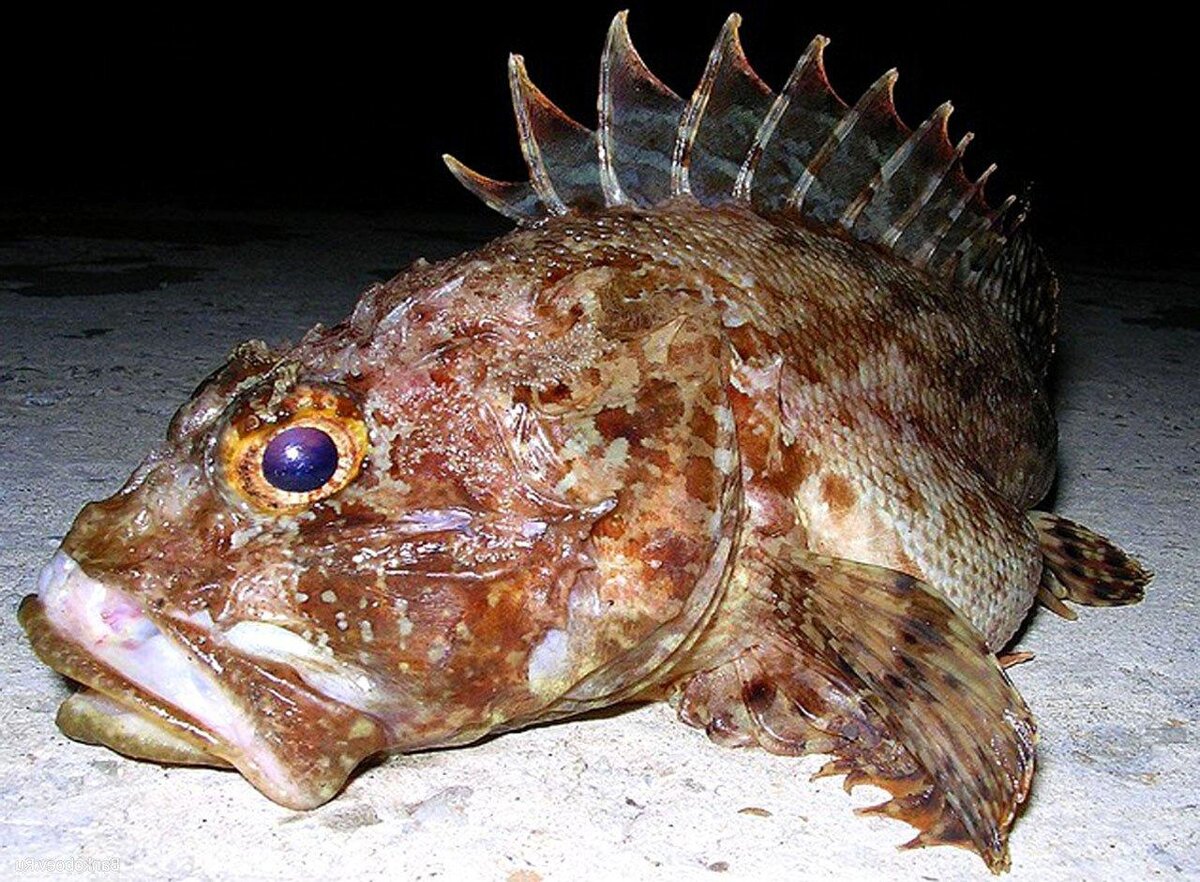 Морской ерш (Scorpaena porcus) — рыба, выбравшая в качестве своего основного защитного оружия необычайно острые шипы и колючки, покрывающие все ее тело. Помимо того, что уколы этой рыбы сами по себе довольно болезненны и неприятны, так они еще и крайне ядовиты, т. к. в основаниях шипов располагаются каналы с ядом. Расположенные в спинном, анальном и брюшном плавниках 20 ядовитых колючек, вонзаясь в тело, доставляют туда же очень ядовитое вещество, которое иногда может послужить причиной смерти особенно чувствительных людей. В связи с этим рыбакам рекомендуют не прикасаться голыми руками к этой опасной рыбе, а, оглушив ее, срезать щипцами или ножницами ядовитые колючки. Если же избежать укола не удалось, стоит усилить отток крови из раны, промыть ее очень горячей водой и обязательно обратиться к врачу. Особенно стоит помнить, что наибольшую опасность морские ерши несут ранней весной, т. к. именно в это время их яд представляет собой поистине гремучую смесь. Тем не менее, справедливости
