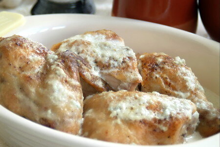 Для приготовления по этому рецепту Вам не потребуется плоской сковороды и груза, всё очень просто. Ингредиенты Цыпленок Соль Перец Чеснок 1 головка Уксус 2 столовые ложки Жирные сливки, или же натуральная сметана Для удобства разделите цыплёнка на части (какие вам удобно). Смешайте уксус с 50 граммами воды, натрите цыплёнка. Затем натрите солью и перцем. Оставьте на 1 час. Смешайте 250 грамм сметаны с натертым чесноком, перцем и солью. Отложите в сторону. На разогретую сковороду налейте растительное масло и подогрейте. Выкладывайте кусочки цыплёнка очень плотно и жарьте на среднем огне до золотистой корочки под открытой крышкой. Как цыпленок подрумянится переверни тело и жарьте на медленном огне до золотистой корочки до готовности. Когда все зажарено, убавить огонь на минимум и залить нашими сливками и дать закипеть. Покипеть 1 минуту. Снимаем с огня и готово. Приятного аппетита!
