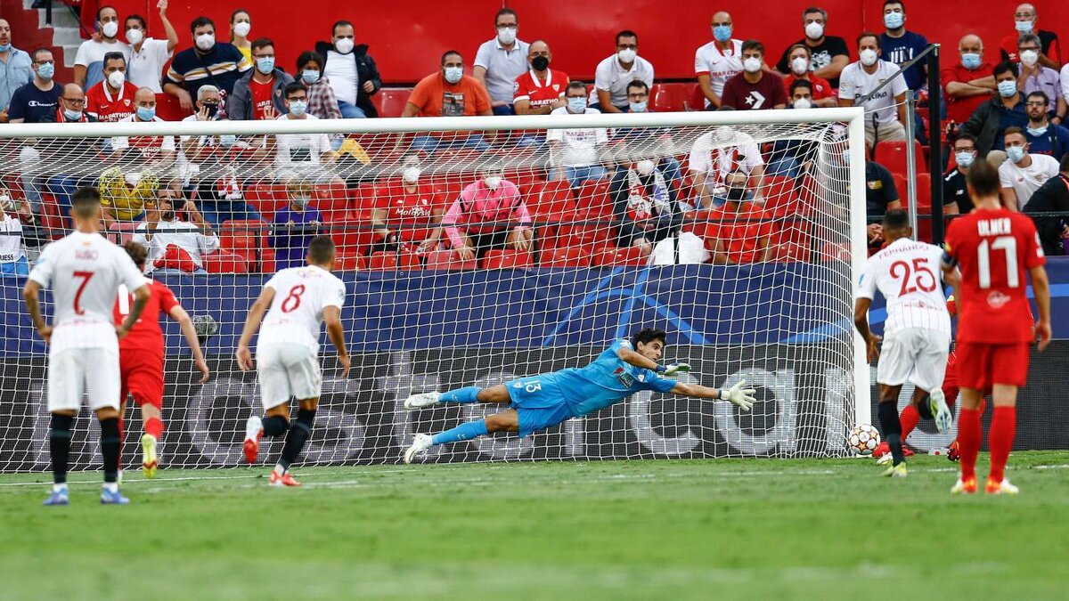 Это материал проекта Гол.ру – мы рассказываем про спорт и мир вокруг «Севилья» в первом туре Лиги чемпионов принимала «Зальцбург». Уникальный матч – это уже ясно по количеству пенальти в первом тайме. Конечно же, такого в ЛЧ не было еще никогда. Матч обслуживал белорусский судья Алексей Кульбаков. На 11-й минуте защитник «Севильи» Диего Карлос сбил форварда «Зальцбурга» Карима Адейеми. Пенальти исполнял Адейеми и пробил мимо ворот. 20-я минута – теперь уже Хесус Навас сфолил на Адейеми. Пенальти исполнял Сушич в правый от вратаря угол и не промахнулся. 36-я минута – опять фол на Адейеми, теперь уже со стороны голкипера Буну. Снова бил Сушич, но мяч отлетел в штангу. На 41-й минуте еще один пенальти, только теперь для «Севильи». Вебер сфолил на Эн-Несири, и Ракитич исполнил четко – 1:1. Это 100-й гол «Севильи» в матчах ЛЧ. Итого: Четыре пенальти в одном тайме, два из которых не была забиты. Три била одна команда («Зальцбург»), забил лишь один. Все три пенальти «Зальцбурга» заработал оди
