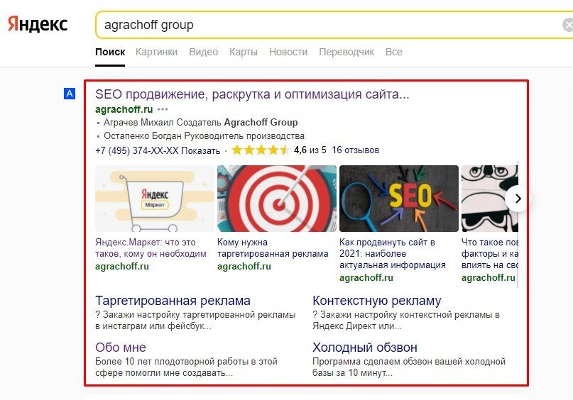 - адрес организации и номер телефона. Делиться подробными контактными данными можно только в этой поисковой системе. Внести их можно при помощи максимального заполнения карточки в Яндекс.Справочнике или с использованием сервиса Schema.org;