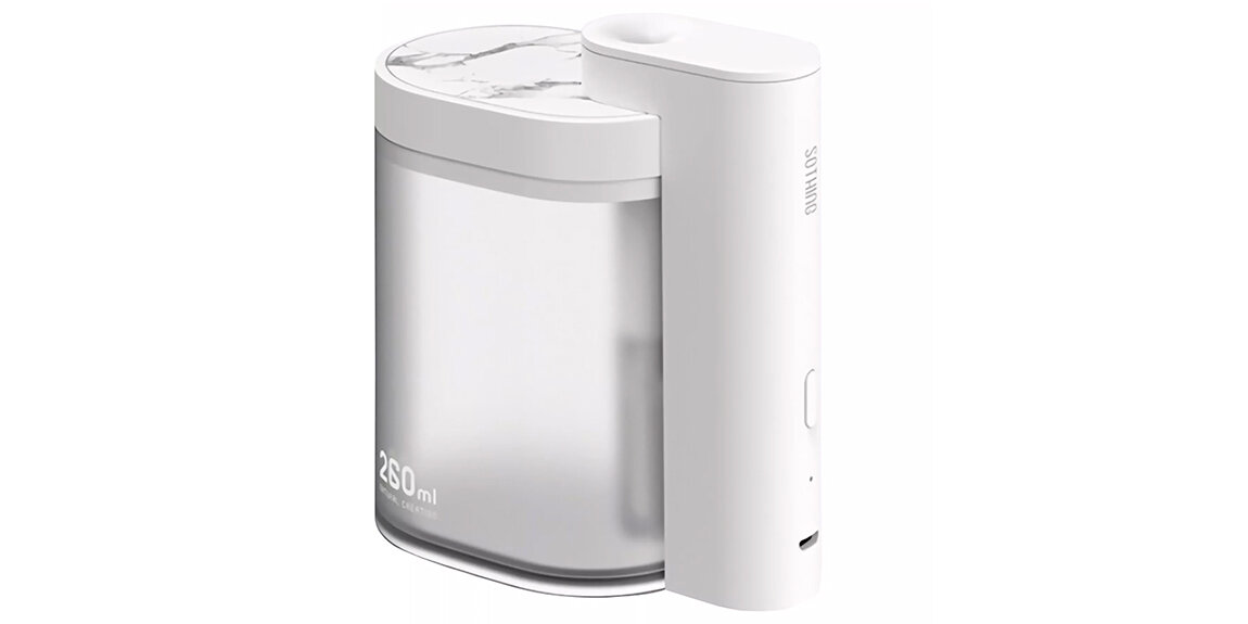Увлажнители воздуха позволяют поддерживать оптимальный уровень влажности в помещении без особых затрат электроэнергии. Эти приборы предотвращают появление сухости в глазах и сонливости. Они обеспечивают повышение работоспособности. Sothing Geometry Desktop Humidifier – это компактный увлажнитель воздуха с необычным дизайном, который несмотря на свои размеры способен значительно улучшить качество воздуха. В этой статье мы поговорим об его особенностях. Уникальный внешний вид Sothing Geometry Desktop Humidifier обладает достаточно минималистичным дизайном, который гармонично дополняется мраморным рисунком. Устройство представлено в белом и розовом цвете. Вся конструкция, включая контейнер для воды на 260 мл, изготовлена из АБС-пластика. Из-за прозрачности резервуара вы можете всегда контролировать количество воды внутри, избегая сухого хода девайса и его негативных последствий. Чтобы добавить жидкость внутрь, достаточно просто открыть верхнюю крышку емкости. При этом емкость для воды мож