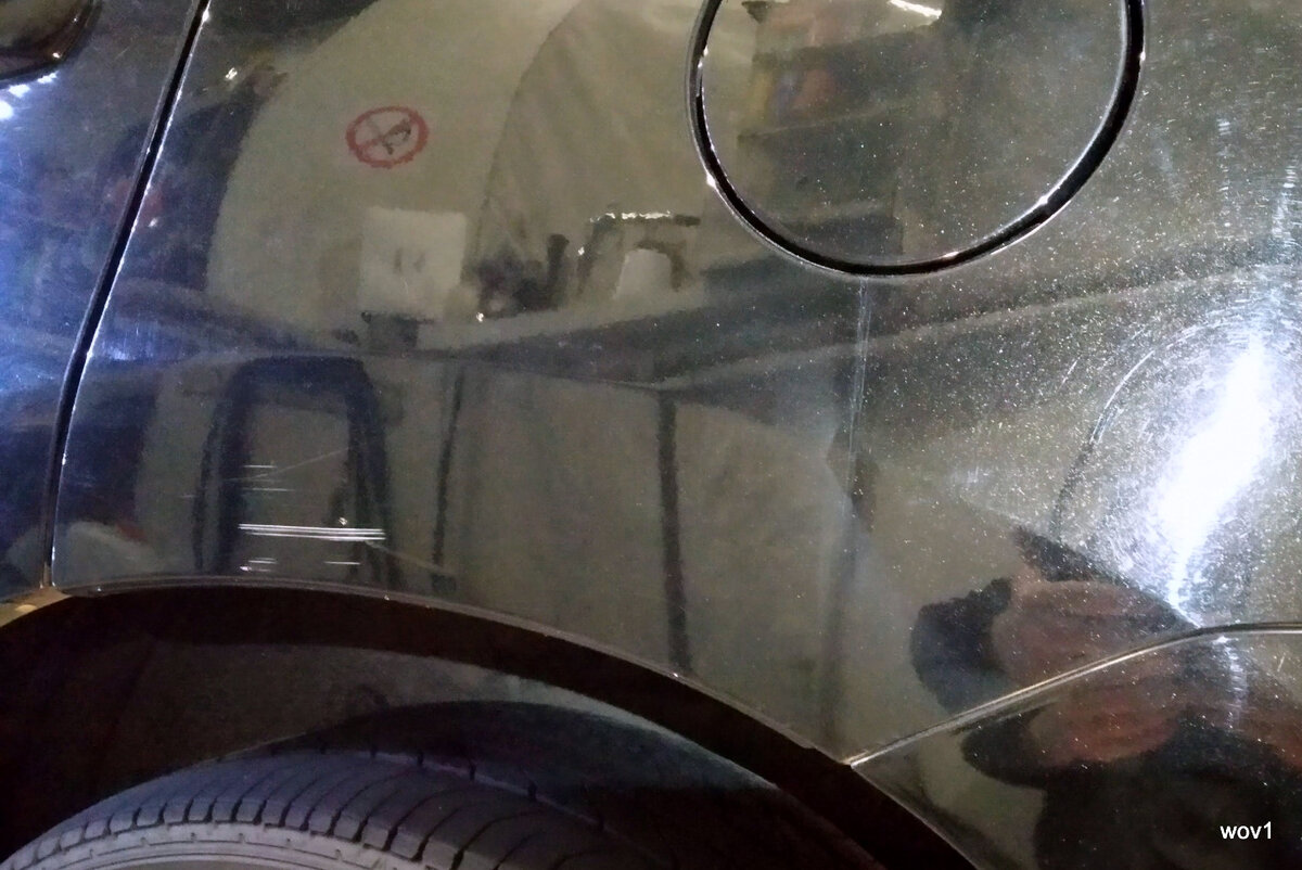 В работе полировщика случается всякое. Вот например сегодняшний пример. Иногда глядя на царапину кажется что ну уж вот тут точно полировка не поможет. По всем видимым приметам, таким как глубина царапины, её цвет, размер, всё говорит о том что полировать это, только время терять. Однако иногда даже при таких вводных данных, получается убрать подобное полировкой. Тем более что это делалось мимоходом и собственно и задачи такой не стояло, убрать эту царапину, так как помимо неё на кузове этого Лексуса хватало мест приложения сил. Собственно то что оно сполировалось, для меня оказалось полной неожиданностью. Да при том так, что и следа полировки практически не видно. Так, если уж внимательно смотреть и при этом знать что вот тут был недостаток, то наверное можно что-то обнаружить. Но на фото этого не видно. Полировалось это полировальной системой 3М, в частности пастой 3М™ 51825 и модифицированным мною кругом на средних оборотах с нажимом примерно в 3 кг. обычной роторной м