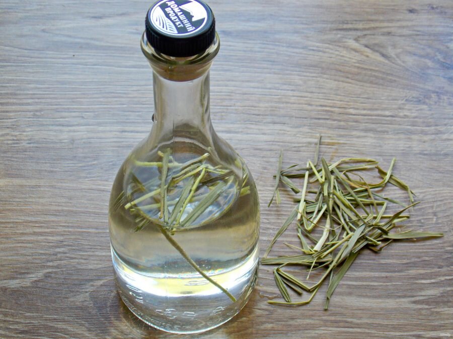 На 1 литр спиртосодержащей жидкости нужно всего 1-2 чайные ложки сухой измельченной зубровки и сахарный сироп из 2-х ложек воды и 1 ложки сахара.