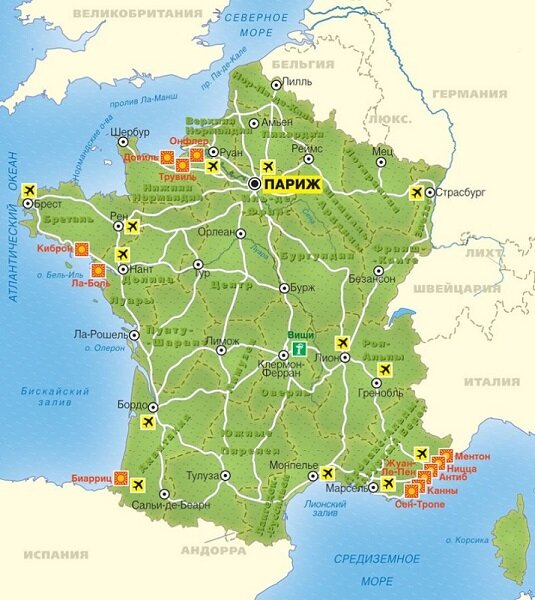Имейте в виду, вы можете с помощью внутреннего авиасообщения добраться практически в любую точку на территории Франции. Помимо указанных выше гаваней, можно смело использовать любые другие.