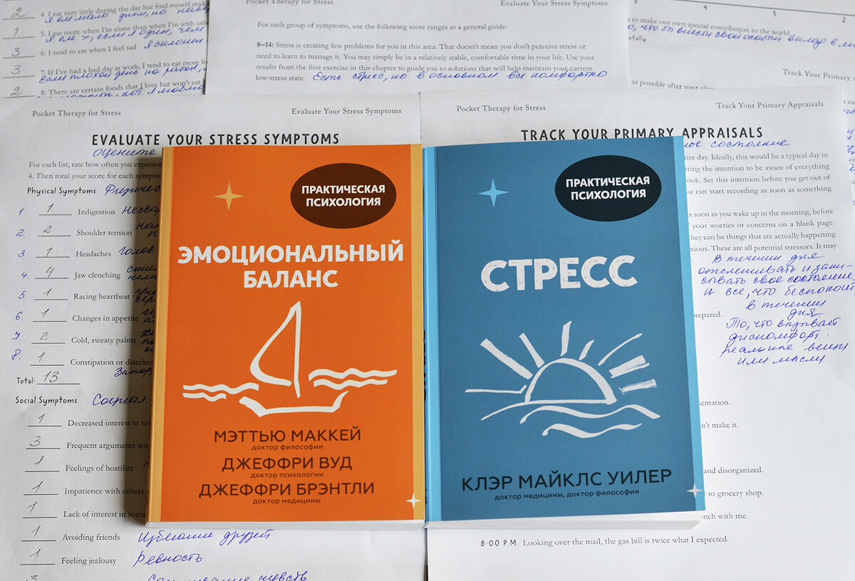 Я для себя выбрала две: Клэр Майклс Уилер «Стресс. 10 способов, которые помогут обрести покой» и Мэттью Маккейн, Джеффри Вуд, Джеффри Брэнтли «Эмоциональный баланс. 12 навыков, которые помогут обрести гармонию». Есть еще «Избегание» и «Тревожность».