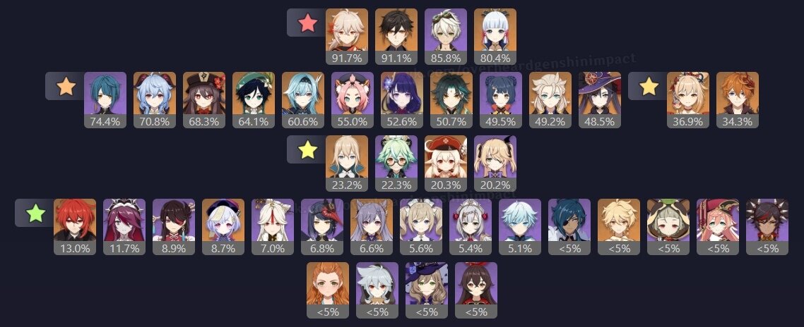 Какого персонажа чаще всего используют в бездне в Genshin impact?
