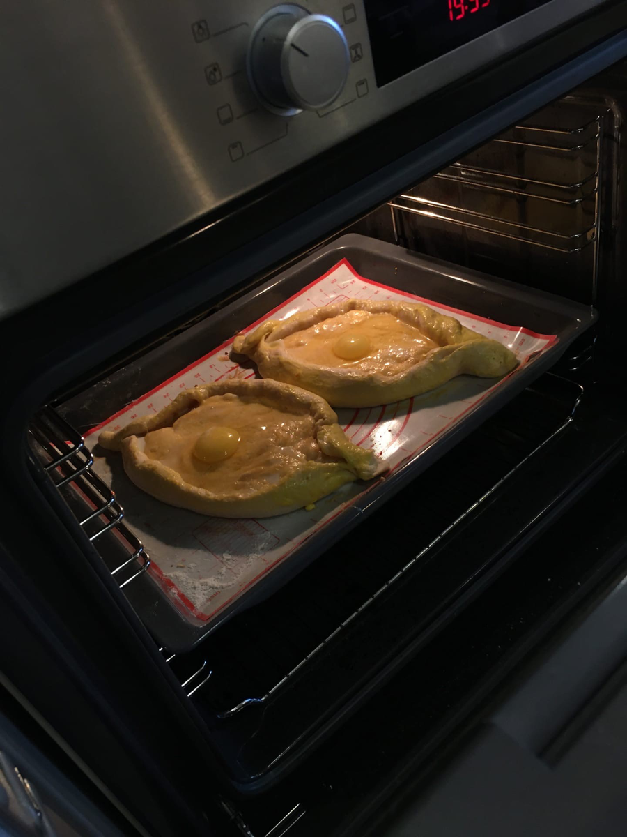 Ингредиенты для теста: Приготовление: Для начала необходимо смешать муку с содой, тщательно размешать и добавить мацони (либо кефир). В отдельной посуде взбить яйца, добавить в них соль и постепенно вводить в смесь растительное масло. После чего смешать сухие ингредиенты с жидкими и замешать тесто ( замес должен быть коротким). Следующим этапом тесто стоит накрыть и поставить в тёплое место приблизительно на час. В случае необходимости более быстрого приготовления можно разогреть духовку до 35-45 градусов и поставить туда тесто на 25-30 минут. После того, как тесто постоит его надо разделить на равные части в зависимости от того, каких размеров хачапури вы хотите делать. Обычно получается 4-6 лодочек. Тесто удобнее всего раскатать кругами. Для начинки лучше всего взять молодой сыр сулугуни, по желанию смешать его 1 к 1 со свежим адыгейским сыром, либо малосоленым. В зависимости от количества лодочек можно подсчитать необходимое количество сыра. В среднем на 4-6 лодочек потребуетс