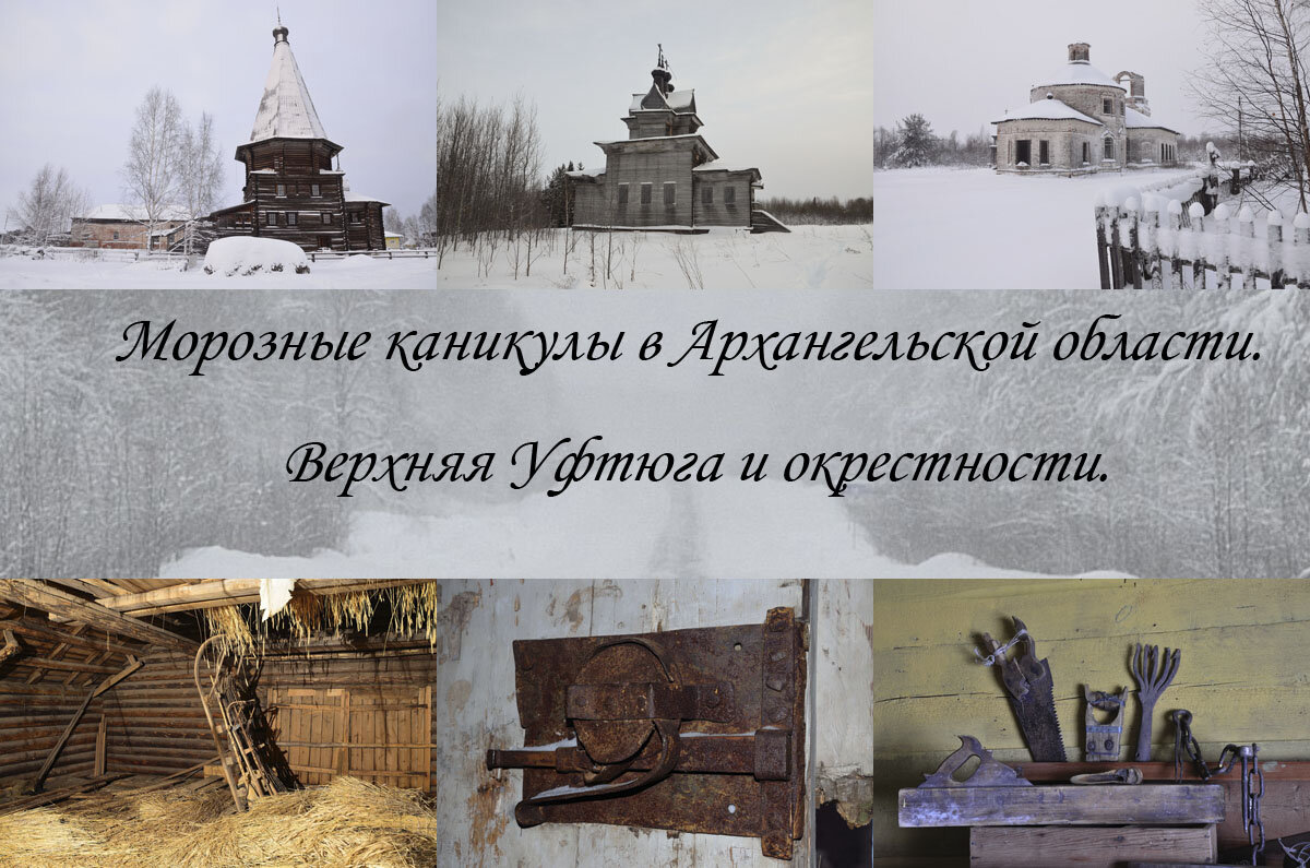 Ну а мы пока едем по окрестностям Верхней Уфтюги. Деревня Большая Слудка, хотя местные ее называют Белая Слуда) — Владимирская церковь — 1896 года постройки. По всей видимости восстанавливается, внутри чисто, все убрано. Лежат репродукции икон, на столах разложены тексты молитв для разных святых. Тропинка к церкви почищена, возможно это подготовка к Рождеству Христову. Следующей точкой была деревня Цивозерский Погост. В деревне сохранились руины Петропавловской церкви (1856-1869 гг.) и деревянная колокольня не сохранившейся церкви Флора и Лавра (1658-1660 гг.) Деревенский сельский пейзаж — умиротворяющие зрелище. Дальше была деревня Пермогорье с двойником — каменной