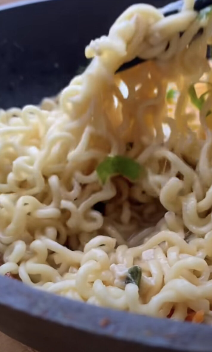 Идеальный рецепт сытного бюджетного блюда для студента — сырная лапша! Все очень просто: ✅Пока заваривается лапша (подойдёт любая для быстрого приготовления), растапливаем сыр на сливочном масле (лучше взять тот, который хорошо плавится). Дальше вливаем сливки, немного воды и добавляем лапшу. Можно высыпать пакетик с приправой, которая идёт в комплекте. Далее немного соевого соуса и какого-нибудь соуса, чтобы придать остроты блюду по желанию. Ещё немного сыра и жарим яичницу. Выкладываем всё на тарелку. Приятного аппетита🍲