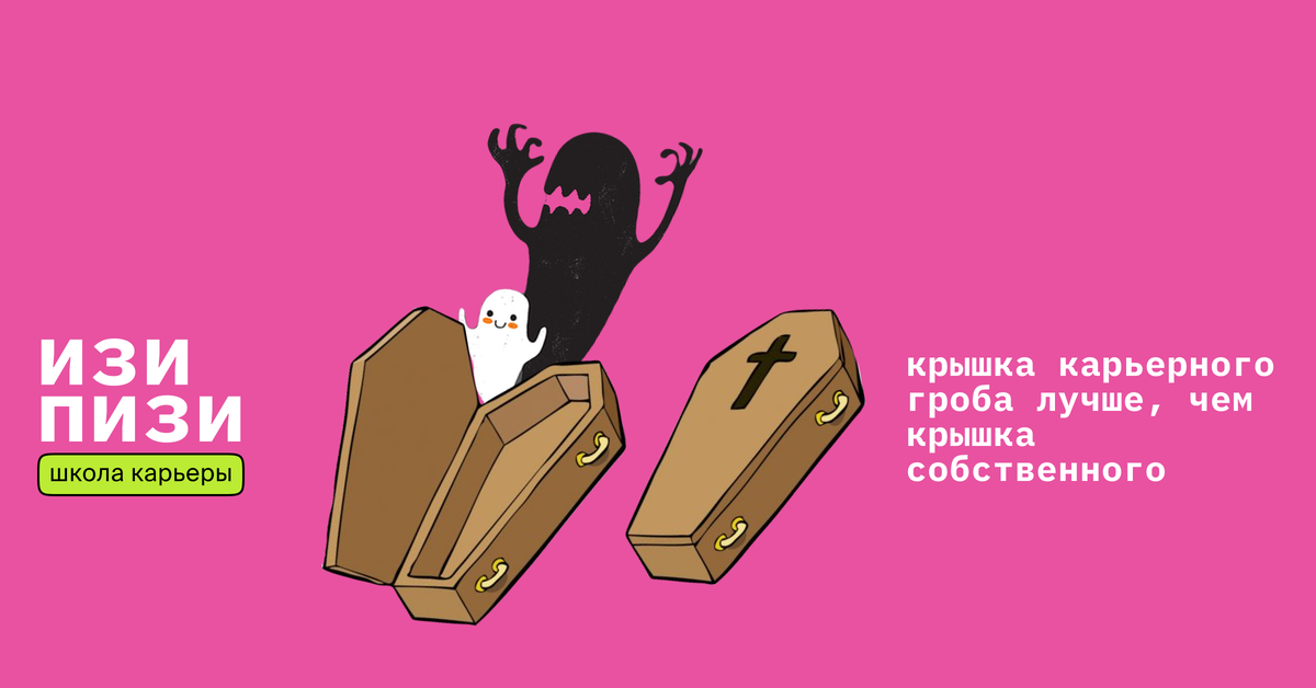 Ой, мы не хотим травмировать ничью психику, но об этом придется поговорить, хотя бы просто потому что “надо”. Если вы застряли с работой и не знаете, что делать дальше, варианта у вас два — либо увидеть в гробу свою карьеру, либо “тьфу-тьфу”, присматривать его для себя. Но ни то, ни другое не кажется нам перспективным, поэтому мы спешим на помощь. И, да, не благодарите за красочные утрированные примеры, сами всё знаем. В конце статьи вас ждут ссылка на чек-ап карьеры от Школы карьеры Изи Пизи, а также ссылки на все наши каналы и расписание бесплатных занятий. С чего начинается карьерный тупик или тревога за будущее, мы, конечно же, обсуждать не будем. Тут как с родиной — она у нас и с картинок в букваре, и с товарищей начиналась... Всех объединяет одно — навис карьерный по-то-лок! И на него, поверьте, лучше ничего не натягивать... Итак, когда мы в него уже уперлись, у нас есть два варианта: 1.Найти новую работу (а значит — отсрочить “ремонт” этого самого потолка) 2.Сменить профессию (н