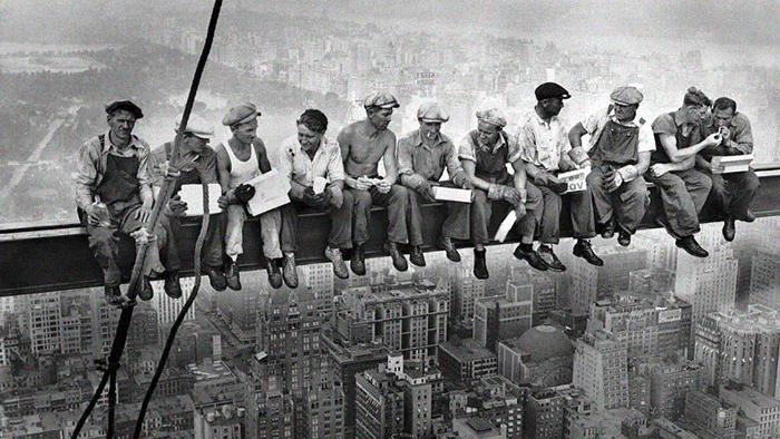 Привет, друзья. С вами снова я, Джон Тайтор, и пришло время вновь отправится в прошлый век в поисках все новых фактов и удивительных фотографий. Но сегодня, тем не менее, путешествие будет с новой целью. С целью разоблачения мифа. Думаю, каждый из вас видел фотографию, на которой рабочие перекусывают во время обеденного перерыва прямо на балке башенного крана на довольно большой высоте. Мне пришлось отправиться в сентябрь 1932 года. Нью-Йорк. Полным ходом идет строительство небоскреба Рокфеллер - плаза. По проекту итоговая высота здания составит 260 метров, а легендарное фото будет сделано на высоте 200. Честно признаться, я был поражен, когда увидел, что фото не постановочное. Да, вы можете возразить, что сценарий для фотографии придуман маркетологами, и на самом же деле окажетесь правы, так как на таких высотах принимать пищу, как минимум, небезопасно, а как максимум непрактично, на фото лишь имитация. Однако стоит заметить, что меня удивил тот факт, что строители сидят на балке абсо