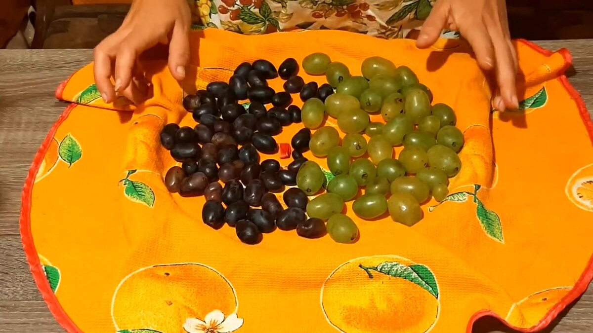 Многие хозяйки в своих кладовых уже заготовили целый арсенал баночек с огурцами, помидорами, кабачками и баклажанами, а также различные варенья и джемы. И вот сейчас уже можно сделать что-то необычное, что разнообразит Ваш стол, удивит гостей и придаст привычным блюдам новые краски вкуса! Готовлю маринованный виноград, который внешне выглядит как оливки. Подходит в качестве дополнения к мясу и сыру, его можно добавлять в салаты и готовить симпатичные канапе 😊. И сейчас самое время, чтобы запастись этой необычной консервацией. Подробности вы можете посмотреть в этом коротком видео: Что же нам понадобится: на каждую 0,5 л банку: Способ приготовления: Шаг 1: Виноград для этого рецепта подходит плотный, и не перезревший. Отделяю ягоды от веточек, тщательно мою и раскладываю на полотенце, чтобы он подсох. Шаг 2: На дно чистых банок я кладу по лавровому листику и заполняю баночку виноградом. Шаг 3: Виноград заливаю кипятком, нарываю баночки крышками и даю постоять 10 минут. Шаг 4: Через 10