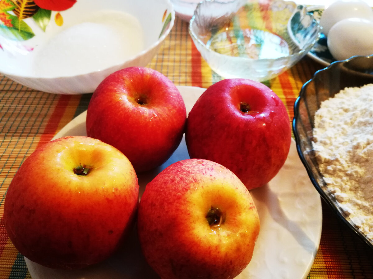 Яблок много не бывает, сочный простой огромный пирог и очень вкусный. А готовить как всегда просто, всем смешал и готово. Очень много рецептов есть яблочных пирогов, но многим нравиться шарлотка. У меня есть на канале пироги, которые можно отнести к правильному питанию рецепты вот здесь, еще один очень вкусный пирог вот здесь Для классического рецепта шарлотки буду использовать: 3шт - больших яблока 3шт - яйца категории СО 270 грамм – муки 130-150 грамм сахара 80грамм - йогурта, молока или сыворотки 60 грамм - растительного масла Горсть изюма по желанию 1 ч.л. соды гашеная уксусом или разрыхлителя Приготовление: Проше простого. Яблоки моем, срезаем кожуру, нарезаем на ломтики примерно около одного сантиметра половину от указанного количества, а вторую половину нарезаем на кубик произвольной формы. В глубокую миску разбиваю яйца, всыпаю сахар и все хорошо взбиваю миксером до увеличение массы в два раза. Затем добавляю йогурт, масло растительное и еще раз хорошо взбиваю миксером. Постеп