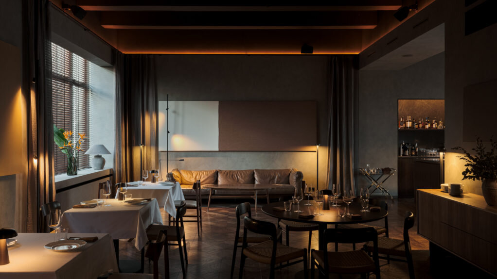 Автор интерьера Алексей Пенюк рассказал, почему отказался от потолочного освещения и погрузил пространство в полумрак. “Я учился на экономиста... Тут мой заказчик Дима Блинов рассмеялся бы: во всех его ресторанах, которые я строил, с экономикой у меня были проблемы” — так начинает свой рассказ о Recolte автор интерьера Алексей Пенюк. По собственному признанию, интерьерами он занялся “наверное, случайно”: все началось с проекта собственной квартиры, потом один друг попросил оформить жилой интерьер, другой друг — ресторан. Так Алексей встретил Диму Блинова: “С тех пор я строю все его проекты”. Проект Recolte — и концепция, и само пространство — создавался очень долго. “Помещение находится над другим заведением команды Duoband — рестораном Harvest, — и мы не могли отказаться от этого второго этажа: так как вход туда проходил через Harvest, нам пришлось его снять. Единственный путь на второй этаж вел прямо через гостевой зал ресторана по огромной металлической лестнице, — описывает простра